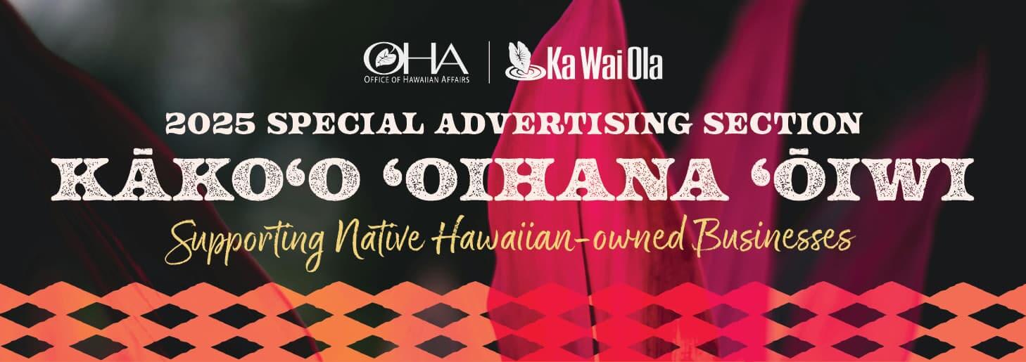Ads 2025 Kākoʻo ʻOihana ʻŌiwi: Support Native Hawaiian Businesses By Ka Wai Ola Staff - November 1, 2025 81 FacebookTwitterPinterestLinkedinEmailPrint Each year OHA gives Native Hawaiian-owned businesses an opportunity to advertise their businesses in Ka Wai Ola. The ads are provided free of cost and help promote Kānaka-owned businesses to our 75,000 print and digital subscribers.