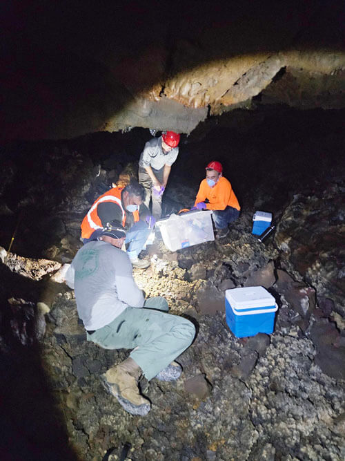 A maopopo ihola ʻia he kakaʻikahi kēia ʻano iwi manu ʻane-wīhaku, a he waiwai nō paha no ka ʻikepili e pili ana i ke au kikilo, a laila ua alu pū nō ko ka U.S. Forest Service (USFS), ko kekahi pāʻoihana hulikoehana ʻo ASM Affiliates, ko ko DLNR mau māhele ʻo Division of Forestry and Wildlife (DOFAW) a me SHPD e kiʻi a e mālama i ia mau iwi ʻane-wīhaku mai loko aʻe o ka lua.